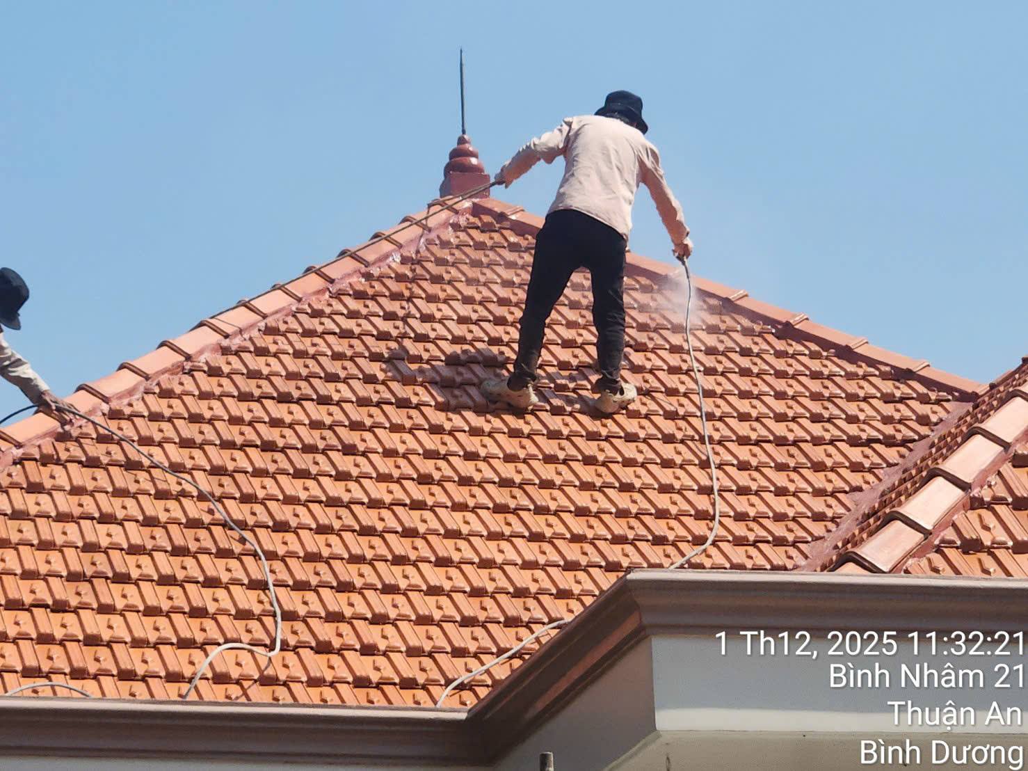 -- Mái ngói được phun chống thấm bóng trong suốt không ngã vàng